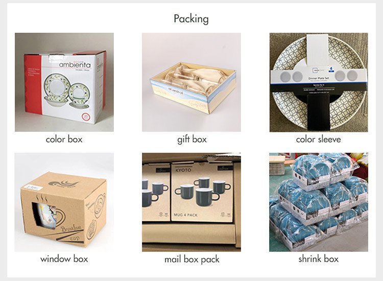 Ceramic dinner set have different combinations,various kinds of designs for choose.Can choose different quantity and sizes of  plate,cup,bowl according to customer's needs.The popular comnations like 8 pieces,9 pieces,12pieces,16pieces,18pieces,24pieces.Pack by customized gift box.Microwave and dishwasher safe.